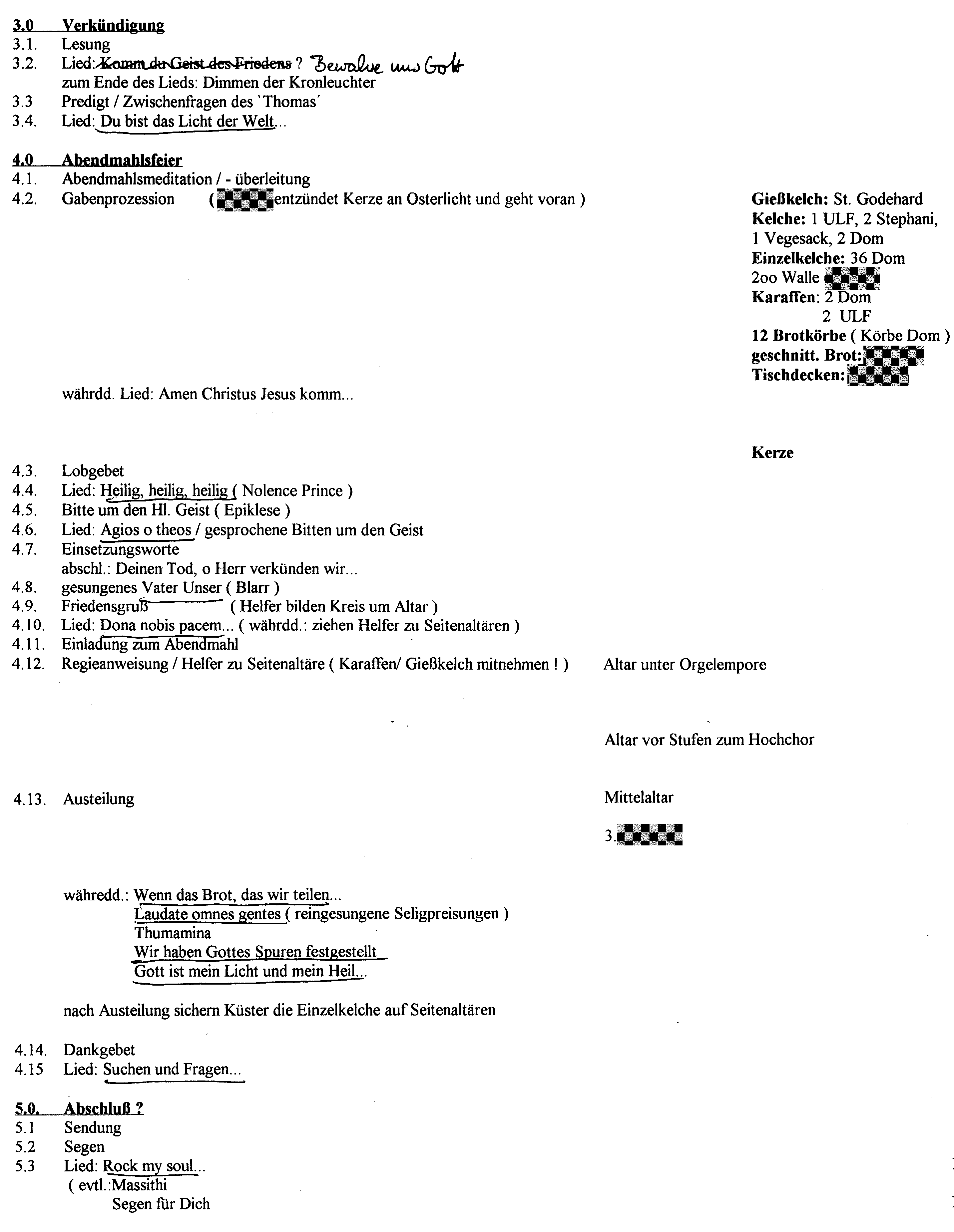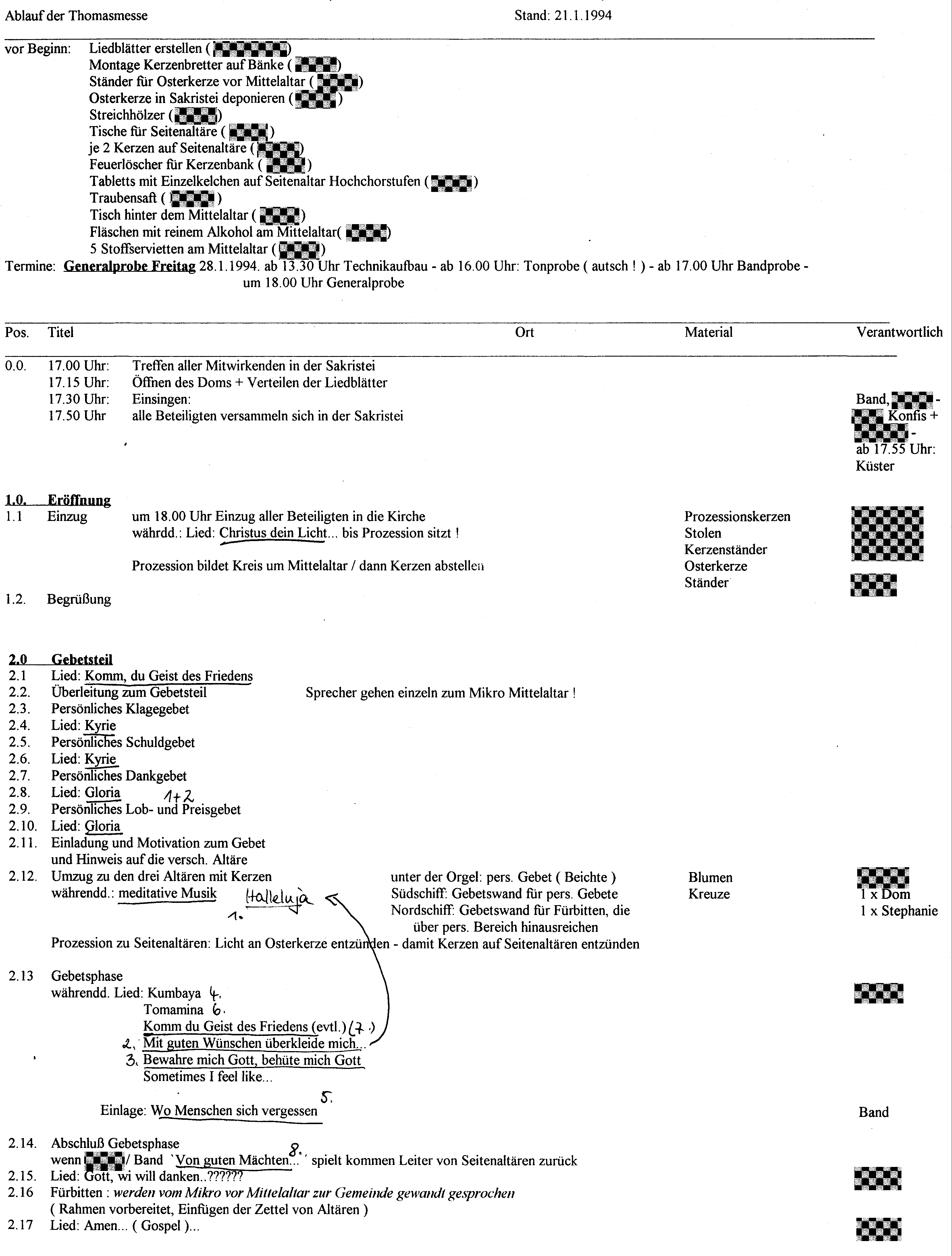 Ablauf' der ersten ThomasMesse in Bremen am 30. Januar 1994 (